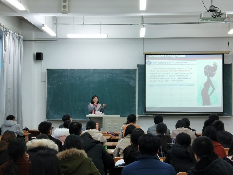 报告会中,吴琴老师结合她多年的学习,教学和研究经验,向同学们介绍了成分数据的概念。此外,吴琴老师通过举胎儿18号染色体异常的例子向同学们表明了染色体病在人群中有一定的发病比例,而这些病变多数会影响本人或其下一代。并且具有家族性,她进一步表明数据分析的强大作用。她用生动形象的语言为大家介绍了统计学未来的发展趋势并且分享了快速、高效学习的方法。最后,Beat365中文官方网站的老师和同学们与吴琴老师进行了互动,同学们及时提出了自己的疑惑,吴琴老师也对同学们提出的问题进行了详细的解答,并激励同学们要担负起数学与统计人才应有的使命,为我国的数学与统计学建设作出应有的贡献,也希望大家能够脚踏实地的学习理论知识,为数学与统计学的发展不懈努力。