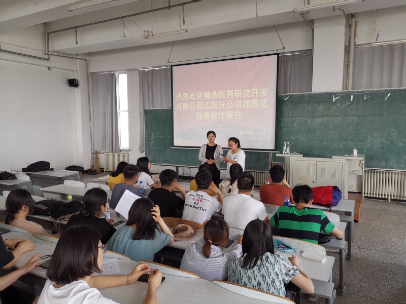 2019年6月27日下午3点30分在林园校区教学图书楼701室,精鼎医药研究开发有限公司沈阳分公司郑茜莅临我院做学术报告,Beat365中文官方网站部分老师、研究生、及本科生和其他学院师生参加了本次学术报告会,会议由统计系支部书记袁晓惠老师主持。