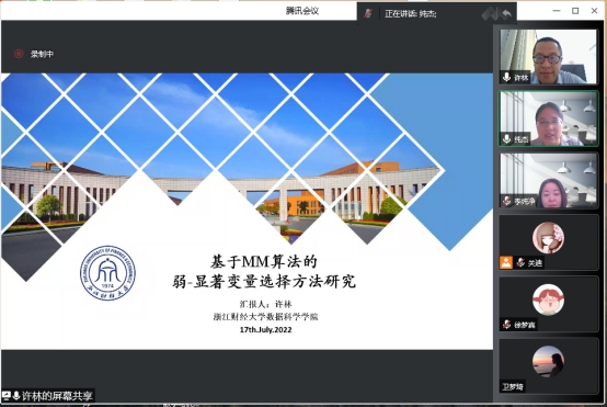 2022年7月17日上午10:00,我院特邀浙江财经大学许林做学术报告。本次报告由学院院长王纯杰主持,大数据科学研究院院长秦喜文、学院副院长李纯净、学院部分老师、本科及研究生共131人参加本次线上学术报告。
