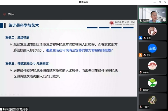 2022年6月18日下午19:00时,我院邀请华东师范大学张日权教授做线上学术报告,报告由学院院长王纯杰老师主持,校教学指导委员会主任董小刚、学院部分老师、研究生共141人参加了本次线上学术报告会。