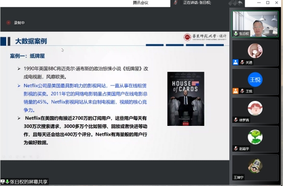 会后,张日权教授与参会师生进行互动,气氛活跃,热情高涨。本次线上报告会有助于全体数统学院师生深入了解统计学与大数据应用的相关内容,讨论了有关于与企业合作项目中遇到的一些问题,同时也详细解答了分布式储存的相关问题。张日权教授的报告开阔了师生的学术视野,拓宽了科研思路,对于Beat365中文官方网站开展各种教学和科学研究工作都具有重要的启示作用。