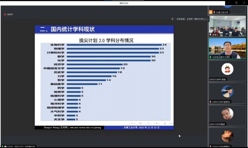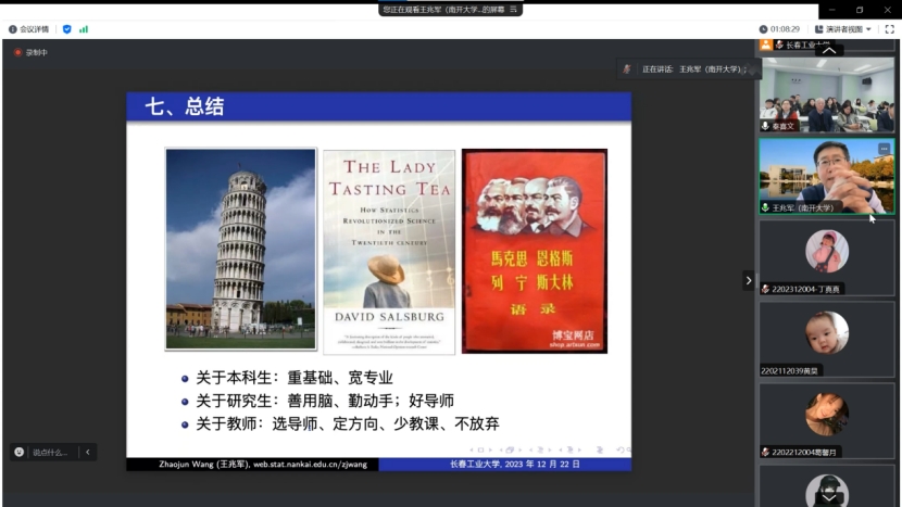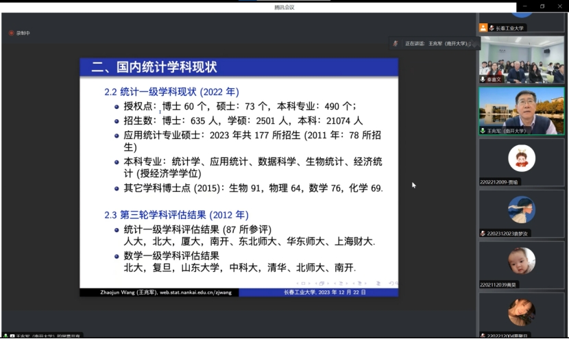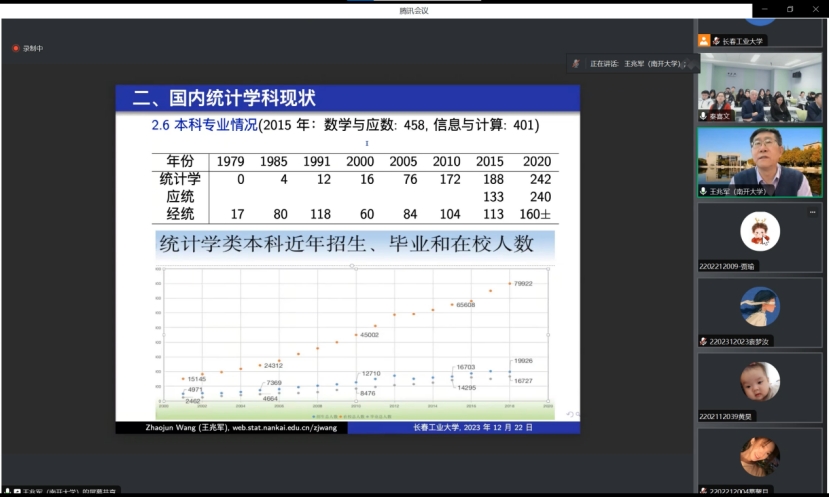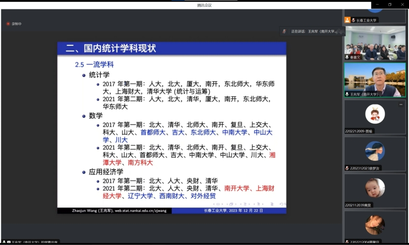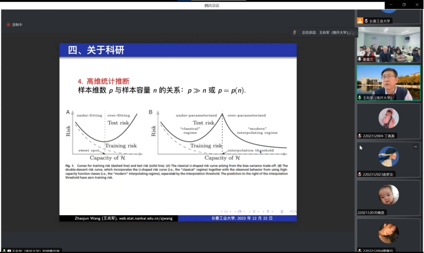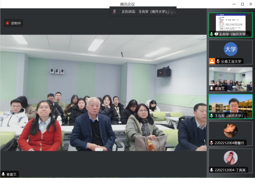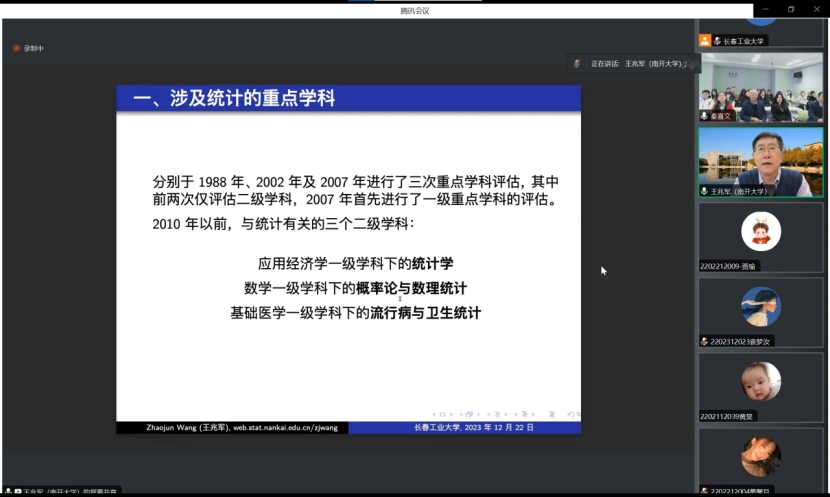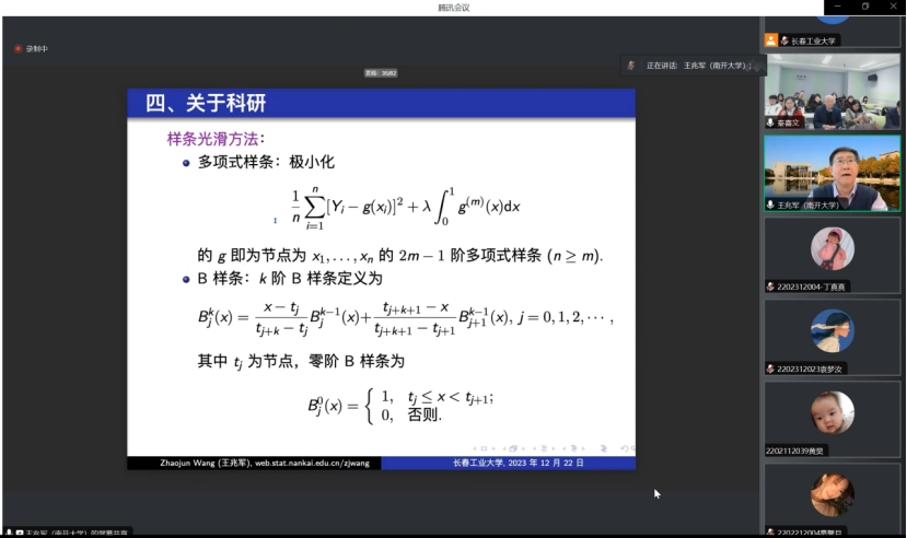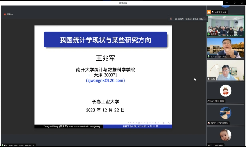 (通讯员:关迪)2023年12月22日9:00 ,南开大学王兆军教授为我院做线上学术报告,学校副校长林洁琼教授、校学术委员会副主任董小刚教授、Beat365中文官方网站院长王纯杰教授、Beat365中文官方网站副院长李纯净副教授、Beat365中文官方网站副院长杨凯副教授、Beat365中文官方网站统计系主任王淑影副教授以及学院部分老师、研究生参加了本次线上学术报告会。会议由大数据科学研究院院长兼学科建设办公室副主任秦喜文教授主持。
