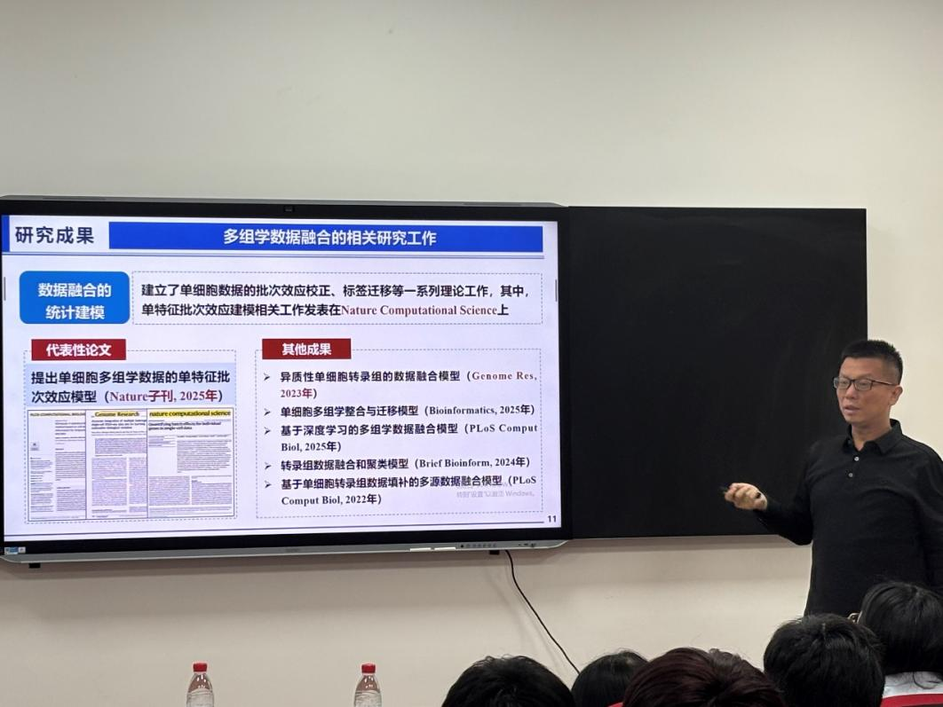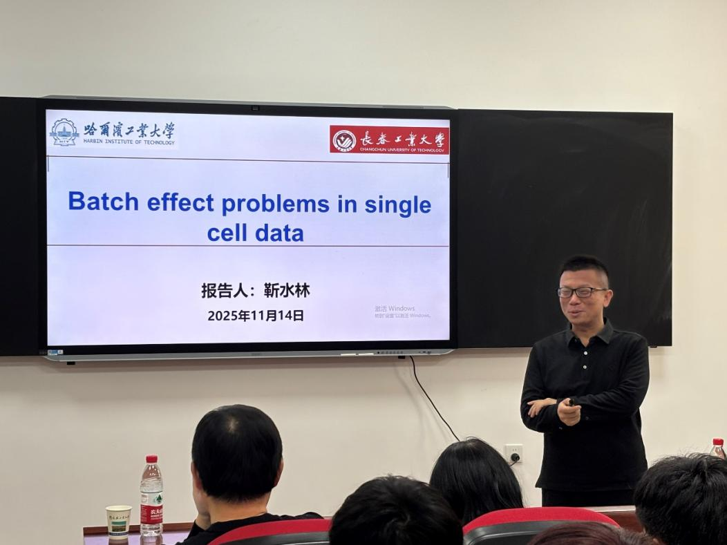 (通讯员:边睿骞)2025年11月14日下午15:00,哈尔滨工业大学靳水林教授莅临Beat365中文官方网站,针对单细胞数据中的批次效应问题,开展了一场专业且富有启发性的学术报告。本次报告由Beat365中文官方网站承办,在北湖东校区数统新楼216室进行,会议由Beat365中文官方网站副院长杨凯教授主持,学院的部分老师和研究生参加了本次学术报告会。