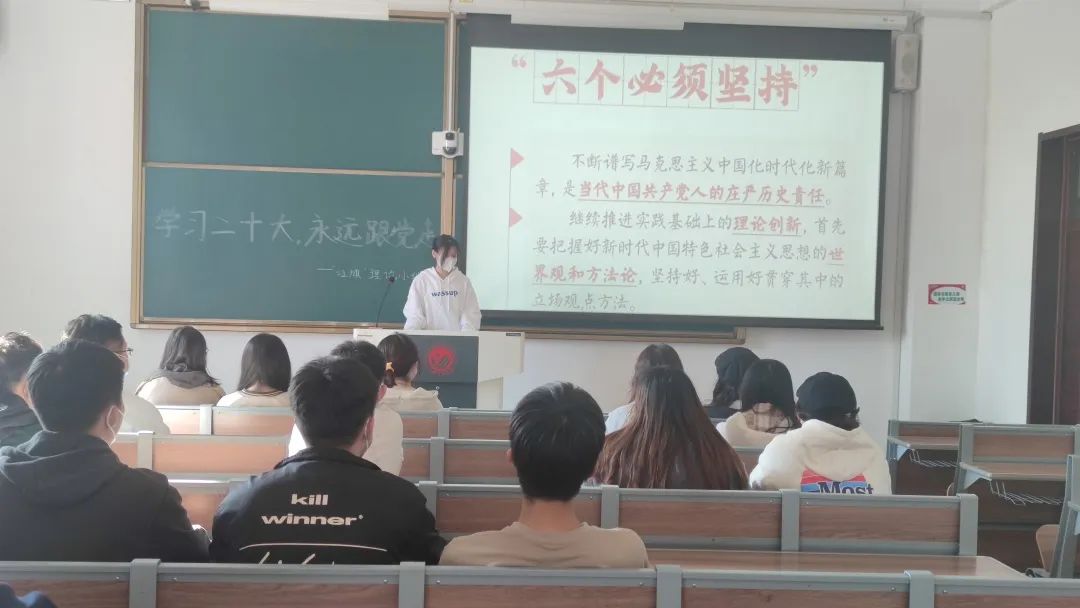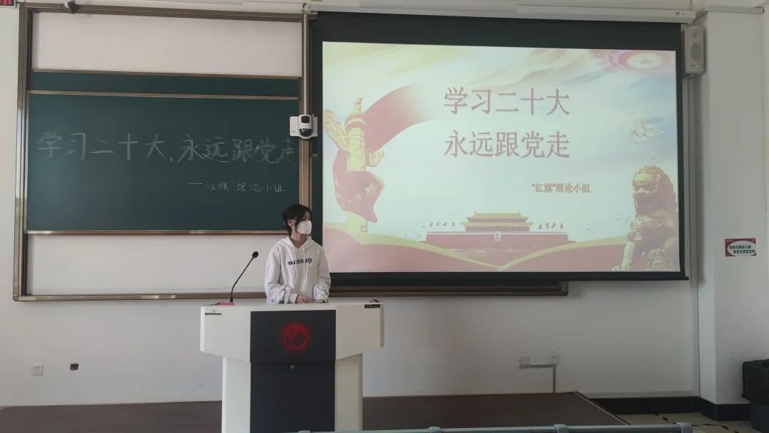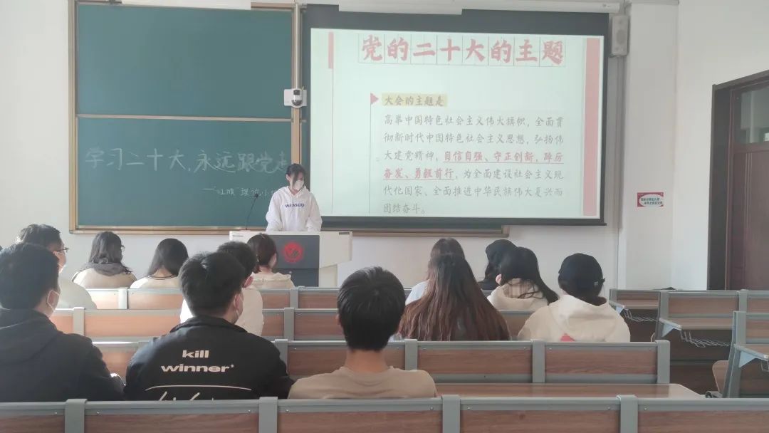 为使青年大学生们深入学习和理解中国共产党第二十次全国代表大会的精神,坚定理想信念,加强思想建设。Beat365中文官方网站组织理论学习社团于2022年10月25日13点在主楼128开展了专题学习会。会议由学院”红旗”理论小组组长邹晶洋同学主持,并带领小组全体成员们开展了理论学习活动。
