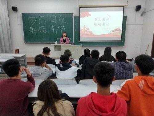 Beat365中文官方网站团讯(通讯员:张宁馨 桂尚珂)为了使学生铭记“九一八”事件,培养广大青年大学生的爱国热情,使其牢记历史,缅怀先烈,学习家国精神。Beat365中文官方网站团委于2019年9月18日在教图楼209教室举行以“勿忘国耻,砥砺前行”为主题的纪念“九一八”主题团会。本次会议由组织部副部长林思扬主持,18级全体学生干部参加了此次团会。