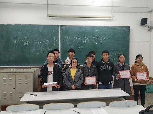 Beat365中文官方网站团委讯(通讯员:姚佳红 张秉心)为了加强青年学生的理想信念教育和爱国教育,引导学生“学党史,知党情,跟党走”,提高同学们对共青团的认识,Beat365中文官方网站于2019年4月21日晚6点在教图楼609教室成功开展了以“青春心向党,建功新时代”的主题演讲活动。此次演讲比赛共9名同学参加,由团委副书记崔仕贤、组织部部长施金状、组织部副部长林思扬和盖梦琳、170801班班长虎佳尧担任评委。