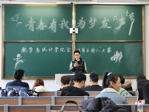 比赛分为两个赛程,第一个赛程为选手按自备稿主持,第二个赛程由评委出题,选手依题目自由发挥主持。比赛由周瀚林同学的家乡介绍拉开了序幕,周丹同学柔情的自我介绍打动了现场的每一位观众,杨莹莹和段富山饱含爱国热情的激情演讲将比赛氛围推向了高潮,真切地表达出了对主持的热爱。经过半个多小时激烈比拼,杨莹莹、郑浩、段富山、周瀚林、周丹五名同学进入了第二轮比赛。第二轮中,周丹为同学们诉说了故乡情怀的温暖,周瀚林带同学们展望了“5G”时代的未来,段富山详细论述了初心和梦想的重要关系,唤起当代青年人的政治信仰和奋斗激情,杨莹莹带大家更深入地了解网络主播的身份和对当今社会的影响与作用,郑浩的主持内容则是提前将大家带到了元旦晚会的现场。经过评审团的打分和评议,最终,周瀚林同学以89分夺得此次主持人比赛第一名,段富山和杨莹莹分别获得第二名和第三名。