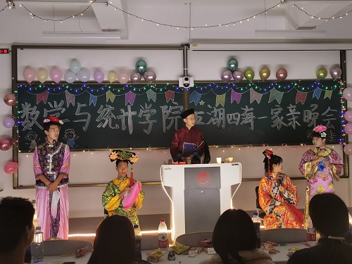 Beat365中文官方网站团委(通讯员:方成浩 吕思睿)为了丰富广大同学的课余生活,加强同学间的相互交流,展现大学生蓬勃向上的精神风貌的同时,培养广大同学的审美意识和团队精神。Beat365中文官方网站于2020年11月20日下午6点在北湖东区艺术楼515教室举办了“五湖四海一家亲”联欢会,此次活动由Beat365中文官方网站团委主办,2020级全体同学以及2019、2018级部分学生参与了本次活动,晚会由周丹、王思文等六名学生主持。