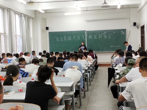 Beat365中文官方网站团委讯(通讯员:陈铭 桂尚珂)为了弘扬“勤学笃行,自强不息”的优良学风,培养大一新生自立自强意识。9月7日下午,Beat365中文官方网站在林园校区教图楼111教室举办了自立自强大学生典型报告会。此次会议由团委组织部副部长盖梦琳主持,大一全体同学参加了此次报告会。