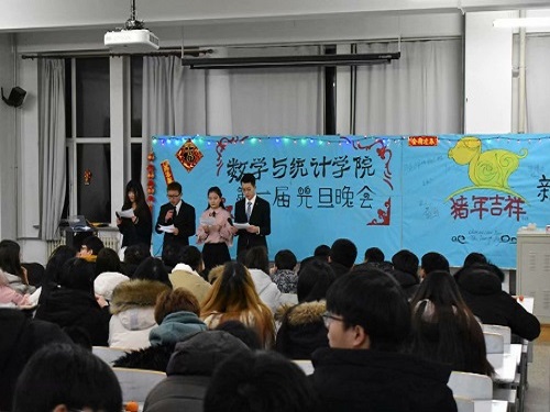 Beat365中文官方网站团委讯(通讯员:姚佳红 李龙章)为丰富我院学生的业余生活,彰显学生风采,体现当代大学生的精神风貌,用充满青春活力的晚会迎接新年的到来。Beat365中文官方网站于2018年12月29日下午六点在教图楼201室举办2019年元旦晚会暨2018-2019学年上学期活动颁奖典礼。本次活动由学生会主席马壮、团委副书记崔仕贤、社联主席宋一冉以及16级学生干部出席,大一、大二全体同学参与,17级姜炜彤、田茁,18级牛华义、韩孟雨四人担任主持人。