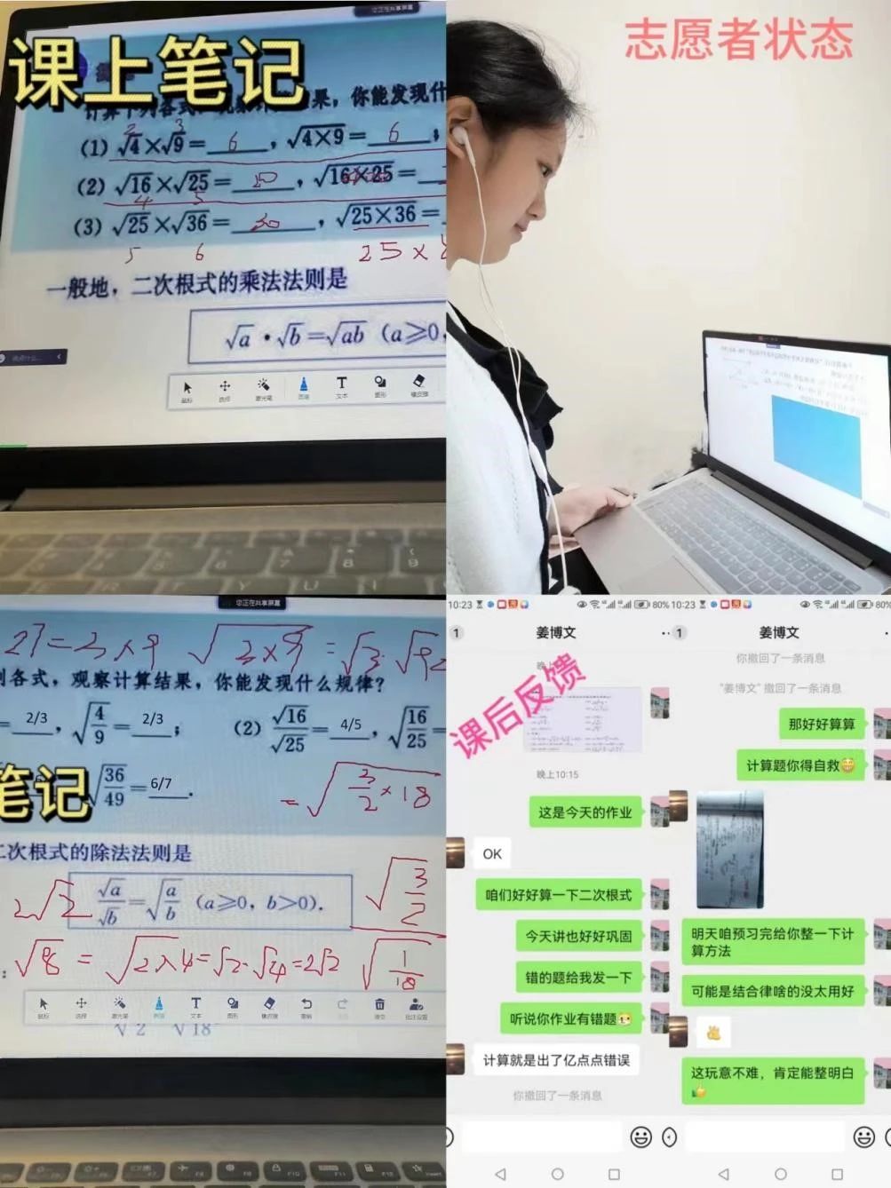 自活动开展以来,我院一批政治觉悟高、业务素质好的优秀青年积极主动报名参加,并在第一时间完成结对子。“学伴+”志愿者们针对服务对象的年级、学科、主要学业帮助诉求等问题,组建“一对一”、“多对一”的学业帮帮团,借助线上微信视频通话、QQ屏幕共享、腾讯会议等平台,通过线上或线下辅导等多种方式,及时解答服务对象的学业问题,用热情与真诚践行志愿精神,得到了学生家长和学生们的一致认可和好评。本期让我们一起了解Beat365中文官方网站“学伴+”志愿者们的伴学故事和心声。