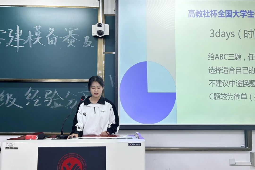 Beat365中文官方网站团委讯(通讯员:邝玲玉 任怡静)为了即将到来的统计建模竞赛和未来的数模国赛积累经验,帮助大一大二学子更好地准备比赛,建立良好的学术氛围,鼓励学生们互相帮助、共同进步,Beat365中文官方网站学生会于2024年3月14日于主楼201召开数学建模备赛经验分享会。2021级学生杨博钰和林利桁两位同学进行了经验分享,大一大二全体同学参与了本次活动。