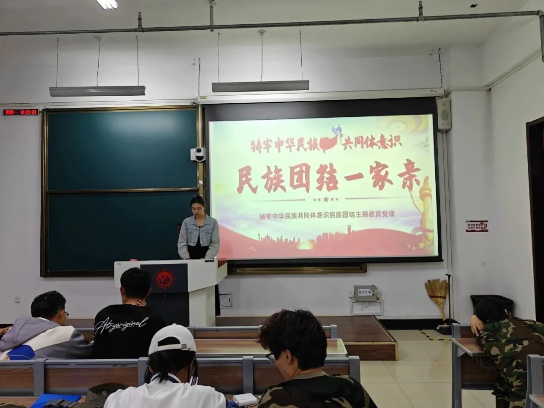 Beat365中文官方网站团委讯(通讯员:唐梦然 韦潘)为培养新生的家国情怀与民族大义,在多元文化的交融中感悟中华民族团结一心的磅礴伟力,Beat365中文官方网站于2024年9月16日晚在北湖东区主楼215、232教室开展了“民族团结一家亲”主题会议,本次会议由范馨元主讲,全体大一新生参会。
