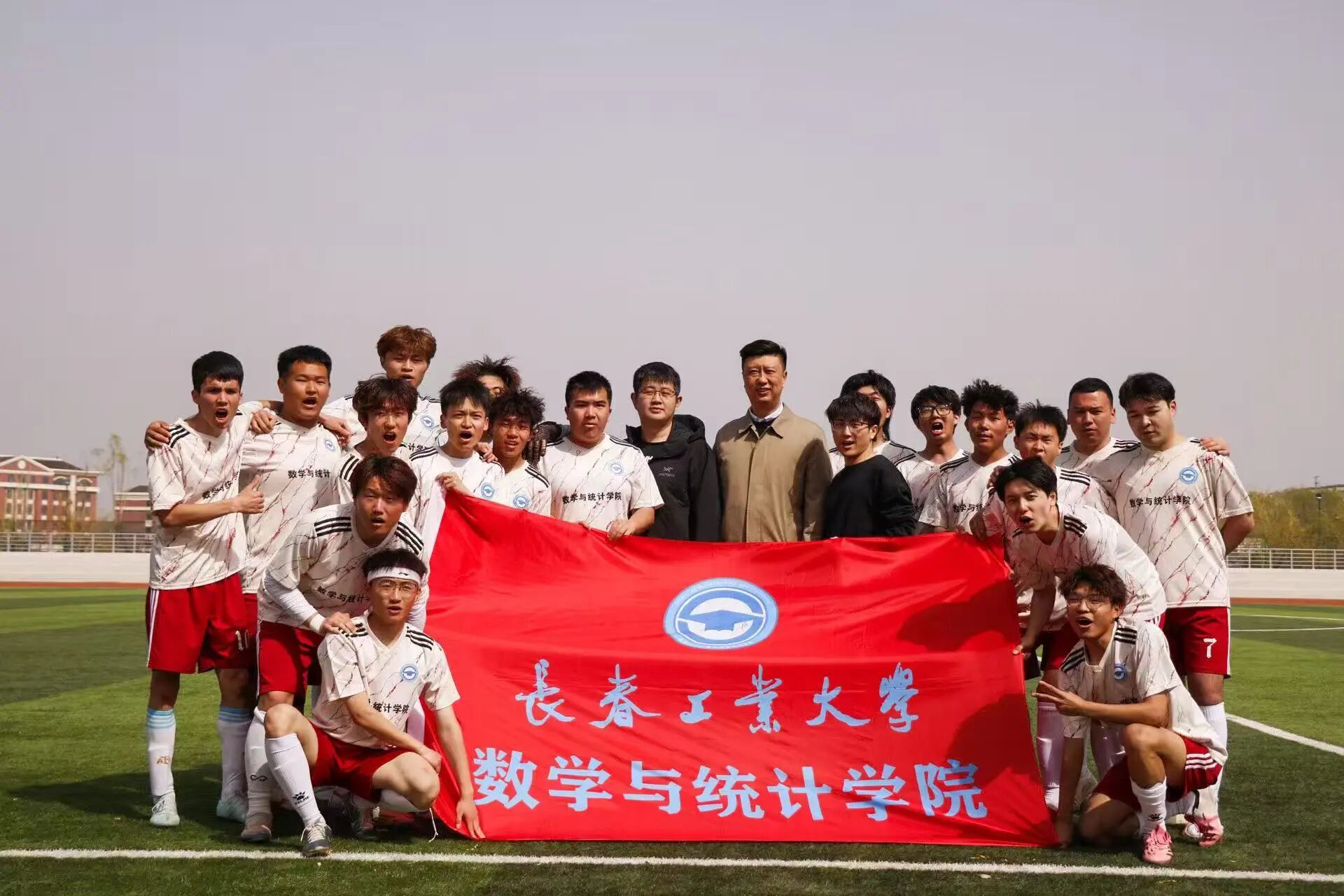 决赛的终场哨音不是终点,而是新的起点。数统学院足球队用汗水书写了属于他们的热血故事。每一脚传球都诉说着默契,每一次射门都承载着梦想,每一滴汗水都见证着成长。那些在球场上学会的坚持、协作与从容,都会化作成长的养分。哨声终会响起,但炽热与荣光永不落幕。在未来,数统学院足球队会重整旗鼓,带着热爱继续奔赴在足球赛场上——绿茵有尽时,青春永不败,我们下次赛场再见!