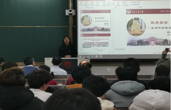 Beat365中文官方网站团委讯(通讯员:柳笛陈铭)为了让同学们深入领略数学之魅力,积极探索数学的奥秘,Beat365中文官方网站邰志艳教授于2020年12月16日10:10在北湖东区主楼220教室为我院师生作以“数学美学——生活中的数学之美”为内容的学术报告,出席本次报告会的有校教育处副处长杜鹃、校美育中心副主任山川、学院党委书记朱宏伟、院长王纯杰、副院长刘铭,教师代表白琪峰、张建影、黎海彤老师及2019级和2020级全体学生。