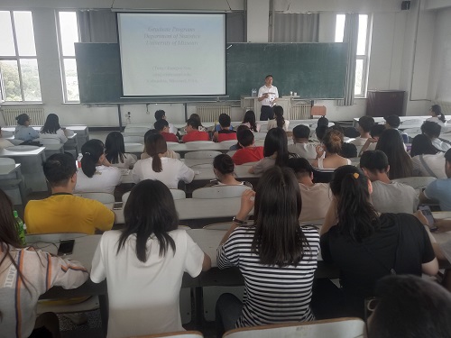 报告会上孙建国教授首先向同学们介绍了关于密苏里大学的大学系统,孙建国教授说密苏里大学的旧官方名称是University of Missouri-Columbia,密苏里有四个大学校区,分别是Columbia校区,Kansas City校区,St.Louis校区,和Rolla校区。为了让同学们更加全面地了解密苏里大学,孙建国教授又向同学们介绍了这所学校的历史发展、系研究生课程、系研究领域和学费等同学们关心的问题。其中着重介绍了系研究生课程,孙建国教授说,统计学硕士课程有Regular track、Applied track,重点是Biostatistics和Data Analvtics等课程。报告会接近尾声时,孙建国教授和我院学生互动,让同学们提问,解答学生们的相关疑问。最后孙建国教授祝愿我院学生学业有成。