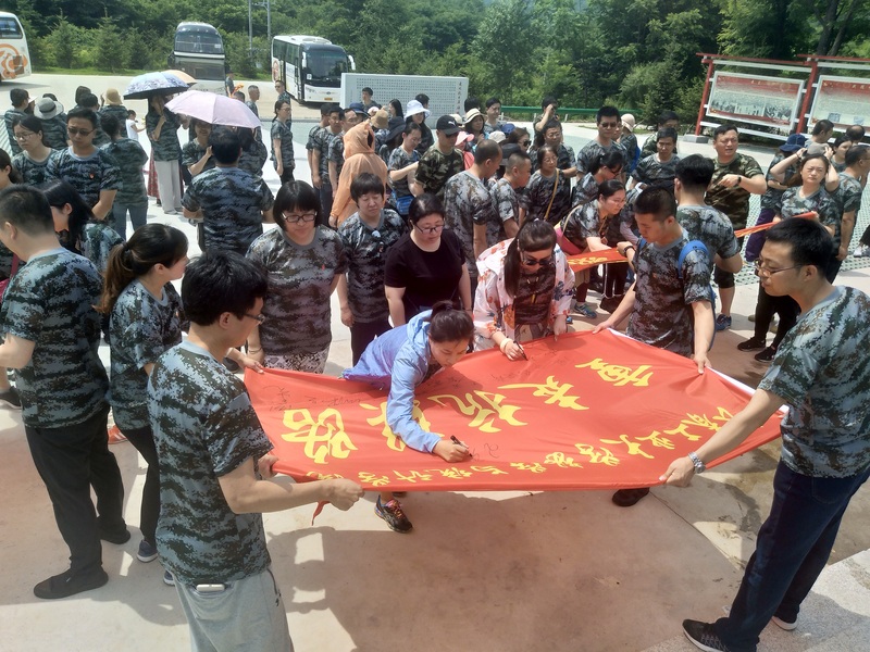 活动最后,朱宏伟带领全体党员,在英雄纪念碑前,面对鲜红的党旗,高高举起右手,重温入党誓词。嘹亮的宣誓声阵阵回荡,也强烈震撼着在场每一位学员心灵。随后,大家在“重走抗联路”的旗帜上留下每一位宣誓人的历史印记。