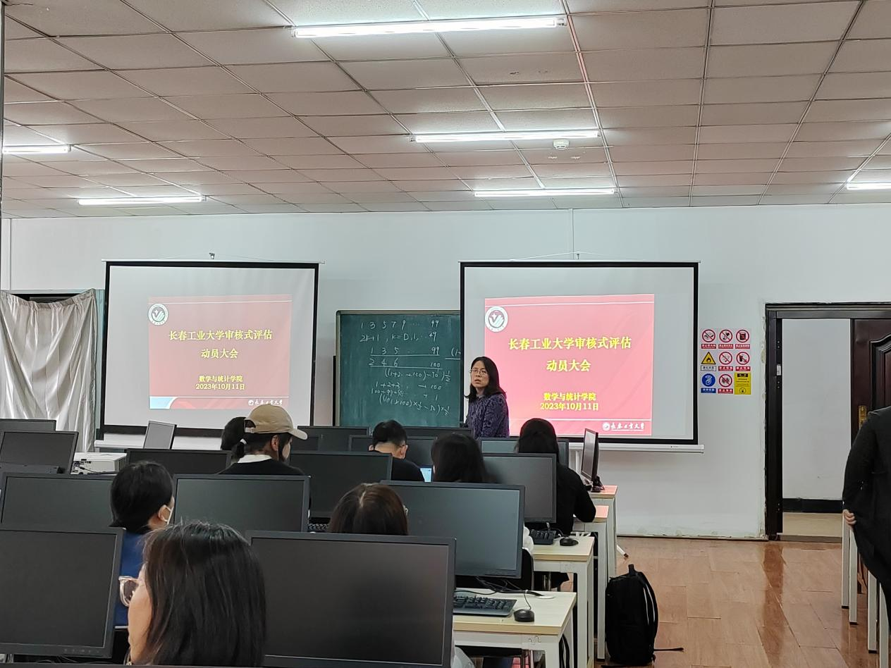 2023年10月11日下午13:30,Beat365中文官方网站全体教师在新图书馆二楼机房,举办了本科教育教学审核评估工作动员大会,旨在推动全院上下统一思想共识、精准谋划部署、压实各方责任,以决战的状态、必胜的信念,保证高质量、高水平、高标准完成本次本科教育教学审核评估工作。