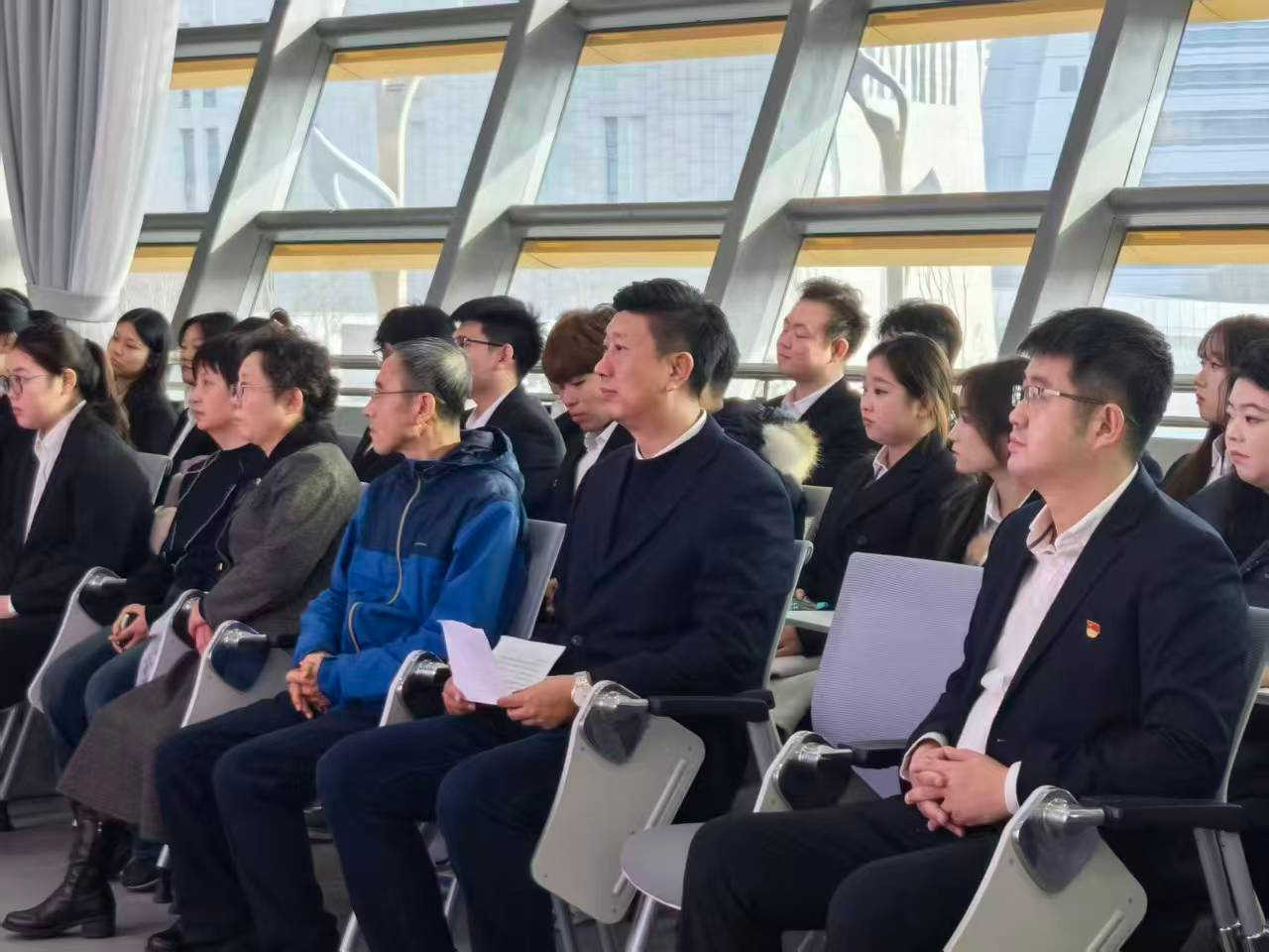 为强化党建引领作用,推动党建工作与业务发展、人才培养深度融合。Beat365中文官方网站于2025年11月12日13:00在长春新质生产力发展促进中心开展“新质生产力中国时刻”党日共建活动。Beat365中文官方网站党委副处级组织员兼研究生党支部书记应艳主持活动,机关党委第十五党支部审计处副处长高景波、工程审计科科长钟春芝、财务审计科科长肖卓、Beat365中文官方网站党委副书记刘晓欣、Beat365中文官方网站学生党支部书记白海洋、学生党员党代表、学院思政工作室第三期研修班学员共计五十余人参会。