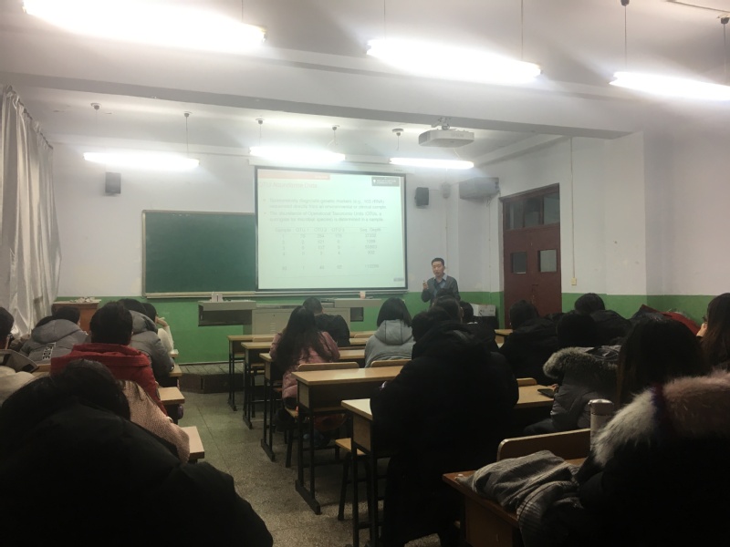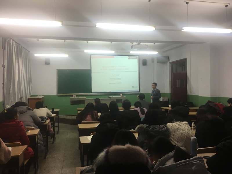 江源老师结合他多年的学习,教学和研究经验,向同学们介绍了有关偏差校正图形lasso的微生物网络估计以及近期研究进展。首先,我们找到一个有关微生物数量的数据,然后用每个微生物的比例进行一种变换,最后用glasso进行图模型建模。做完报告后,Beat365中文官方网站的老师和同学们与江源老师进行了互动,同学们及时提出了自己的疑惑,江源老师也对同学们提出的问题进行了详细的解答,又为同学们在这个方向上的学习给出了指导性的建议。并激励同学们要担负起数学与统计人才应有的使命,为我国的数学与统计学建设作出应有的贡献,也希望大家能够脚踏实地的学习理论知识,为数学与统计学的发展不懈努力。