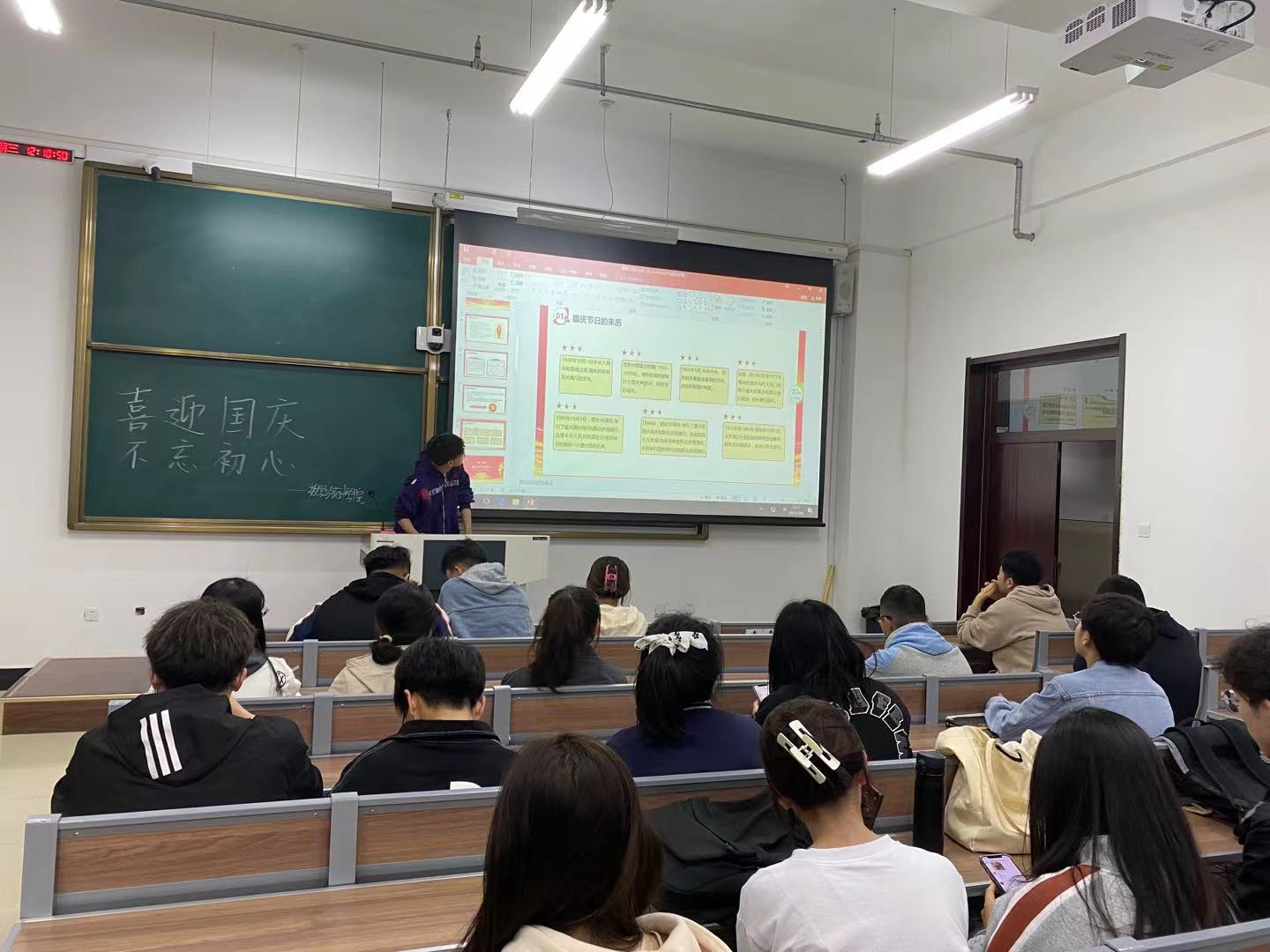 Beat365中文官方网站团委讯(通讯员:邹强 方成浩)为共同庆祝祖国72周年华诞,加强学生爱国意识,提高学生爱国热情。10月6日,Beat365中文官方网站团委组织2020级和2021级各班团支部委员们在北湖东区主楼128教室开展“学习筑梦”活动——“喜迎国庆,不忘初心”主题团会。本次团会由200802班团支书颜兴洲主持。