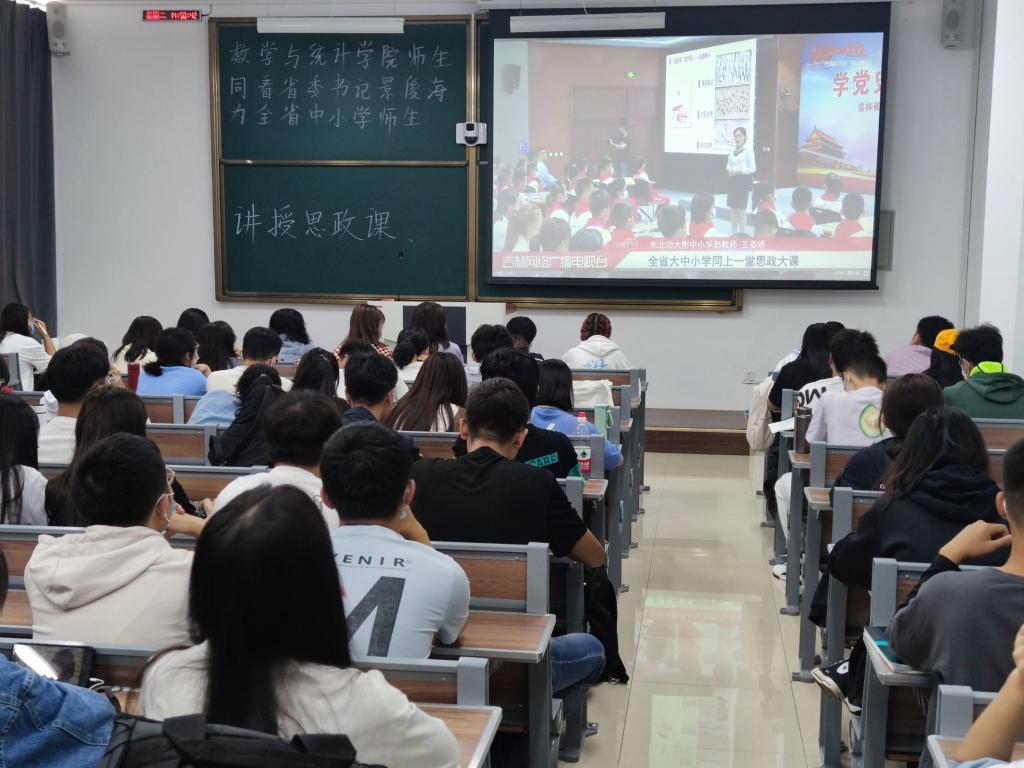 Beat365中文官方网站团委讯(团委讯:邹强 方成浩)为深入贯彻习近平总书记“七一”重要讲话精神和视察吉林重要讲话重要指示精神。9月14日,省委书记景俊海以“学党史、悟思想、筑信仰”为主题,为全省大中小师生讲授思政课。Beat365中文官方网站于2021年9月14日组织全院600余名师生分别在北湖东区主楼232、主楼116、艺术楼515三间教室集中观看方式和个人手机端观看方式参加了此次线上直播思政课的学习。