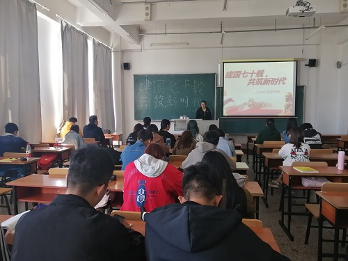 Beat365中文官方网站团委讯(通讯员:张及佳 桂尚珂)为纪念祖国建国七十周年,帮助学生们积蓄精神力量,树立大国理想,Beat365中文官方网站各团支部开展“学习筑梦”系列活动之“建国七十载,共筑新时代”。活动于2019年9月20日在教图楼举行,19级、18级、17级全体团员参加本次活动。