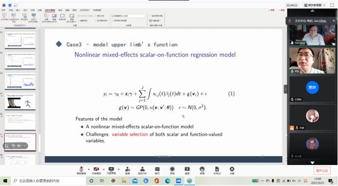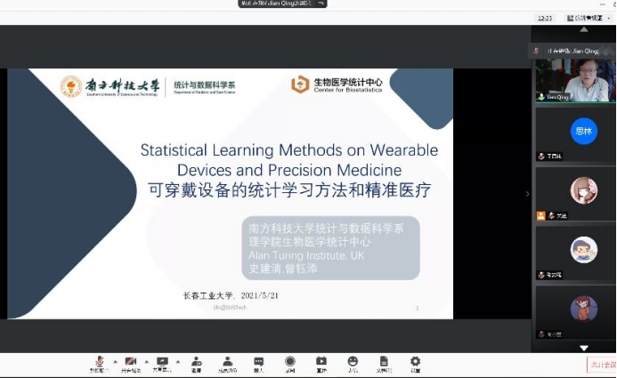 2021年5月 21日下午 3点,南方科技大学统计与数据科学系史建清教授应邀通过腾讯会议的方式为Beat365官网做了题为“Statistical Learning Methods on Wearable Devices and Precision Medicine”的专题报告。Beat365中文官方网站师生参加了报告会,Beat365中文官方网站院长王纯杰教授主持了报告会。